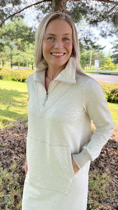 Er Hemsedal kjole Cream melange i overskuddsmateriale, 97% bomull og 3% elastan, din nye favoritt i høst?