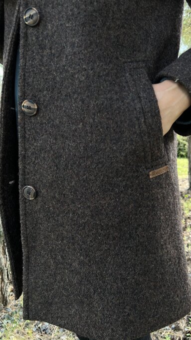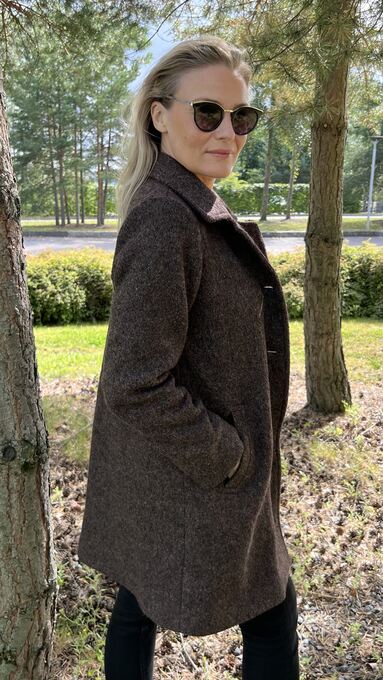 Lillehammer kåpe Brown. Lillehammer er en ny kort kåpemodell denne høsten, laget i RWS sertifisert 100% ull . Med både elastisk ull og elastisk fòr gir kåpen maksimal komfort! En lett innsvinget passform gjør at den gir kroppen din fin fasong. Ullstoffet er sertifisert etter RWS (Responsible Wool Standard) Dette er en frivillig global standard som sikrer dyrevelferd og sunne beiteområder.